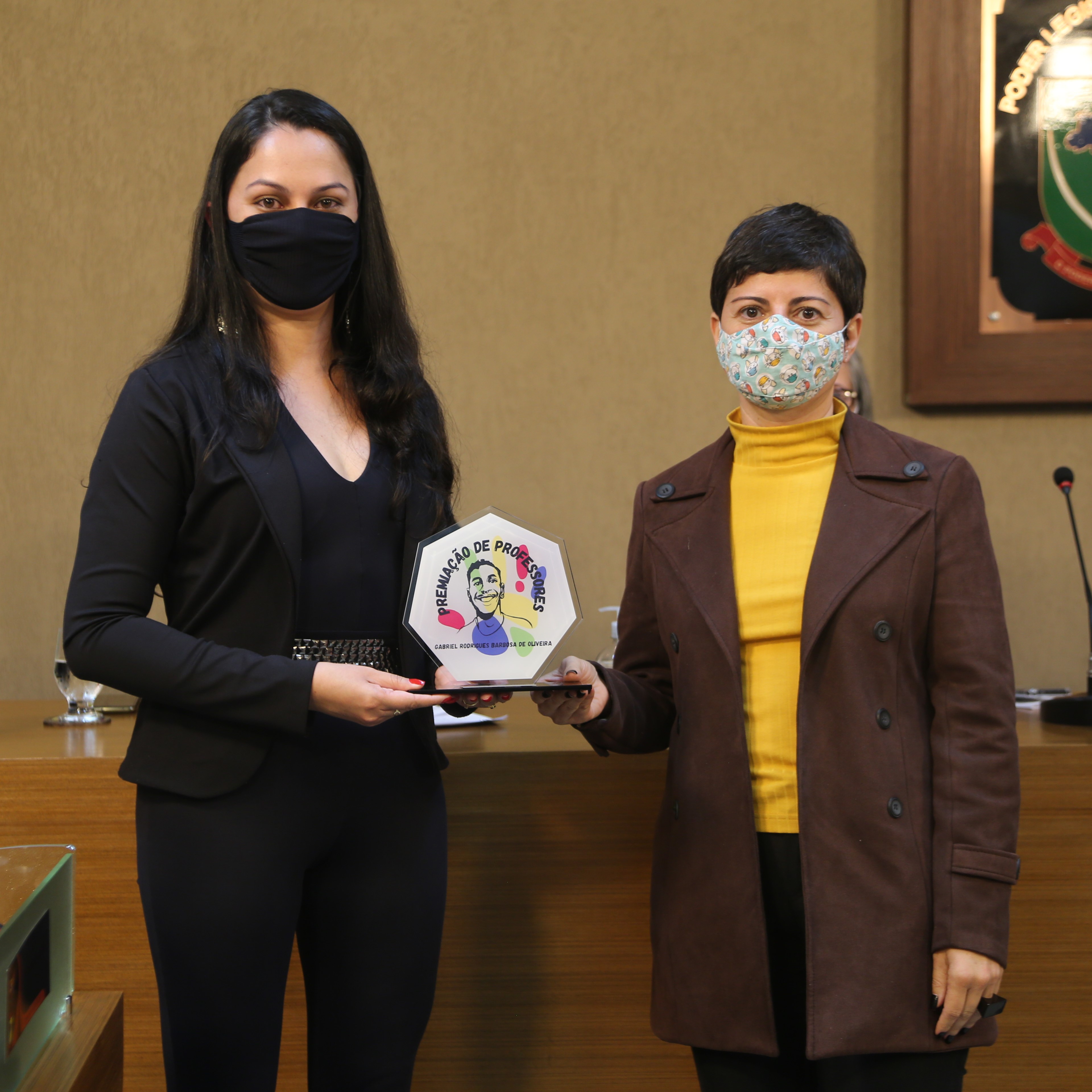 A Vereadora Marly Coelho (PSC) entrega o troféu e certificado a 6ª colocada da premiação: professora Thamyres Medeiros.