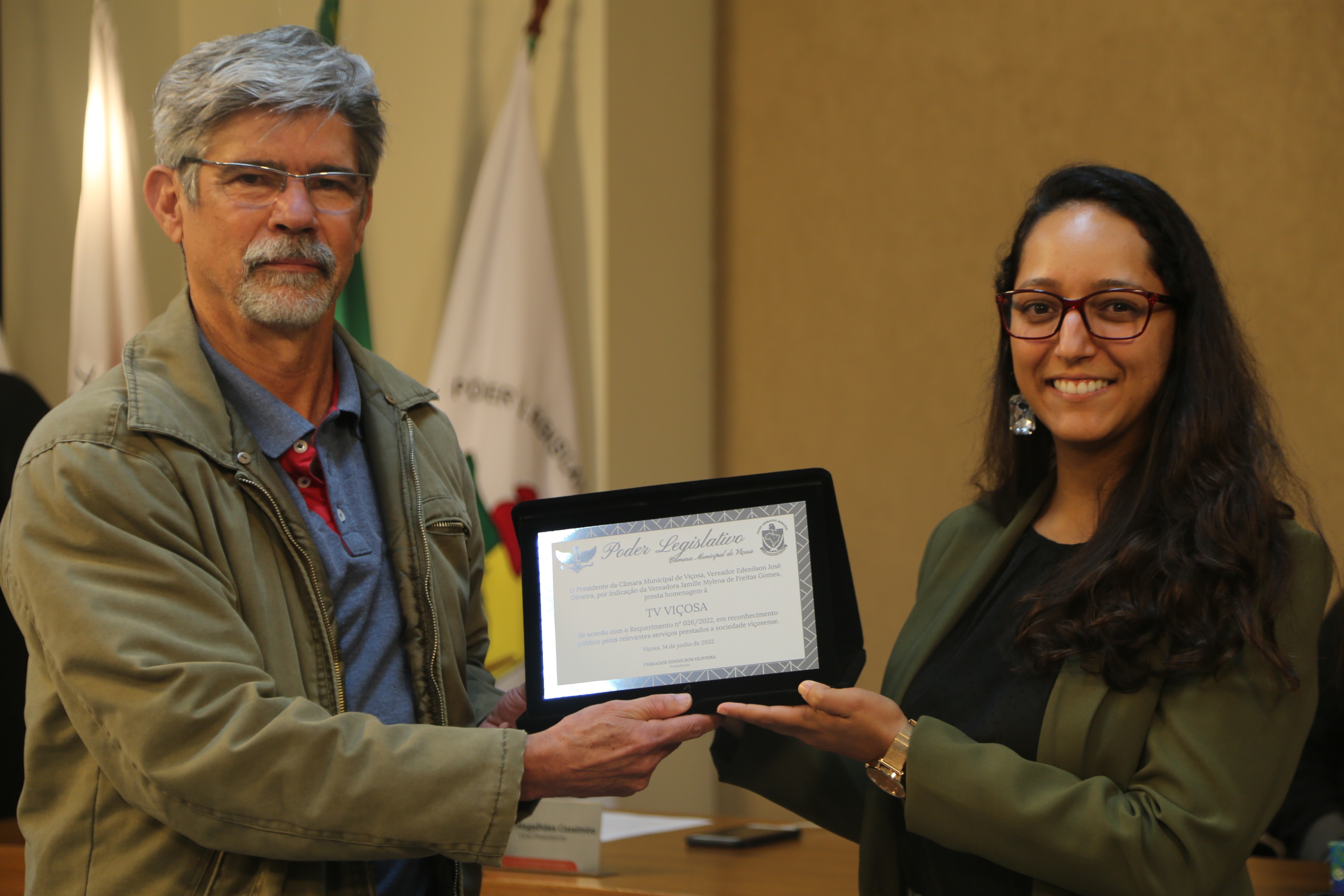Homenagem à TV Viçosa com entrega de placa alusiva solicitada pelo Requerimento n° 026/2022, de autoria da Vereadora Jamille Gomes (PT)