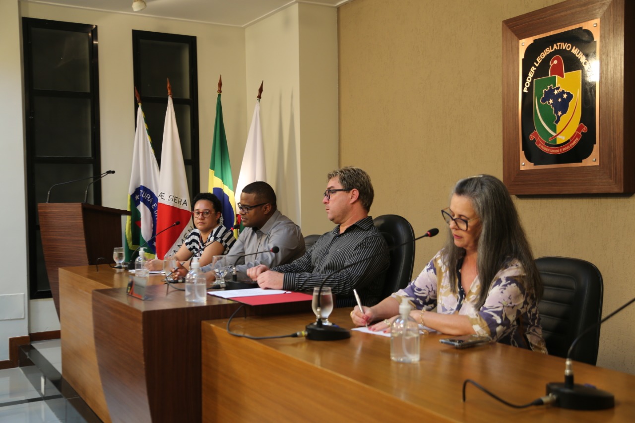 Compondo a Mesa Diretora o Presidente da Casa, Vereador Edenilson Oliveira (PSD); Coordenador Geral da Escola do Legislativo, Vereador Bartomélio Martins (Professor Bartô) (PT); Coordenadora Pedagógica da Escola do Legislativo, Patrícia Gomes e a Secretária de Educação, Marli Aparecida Franco