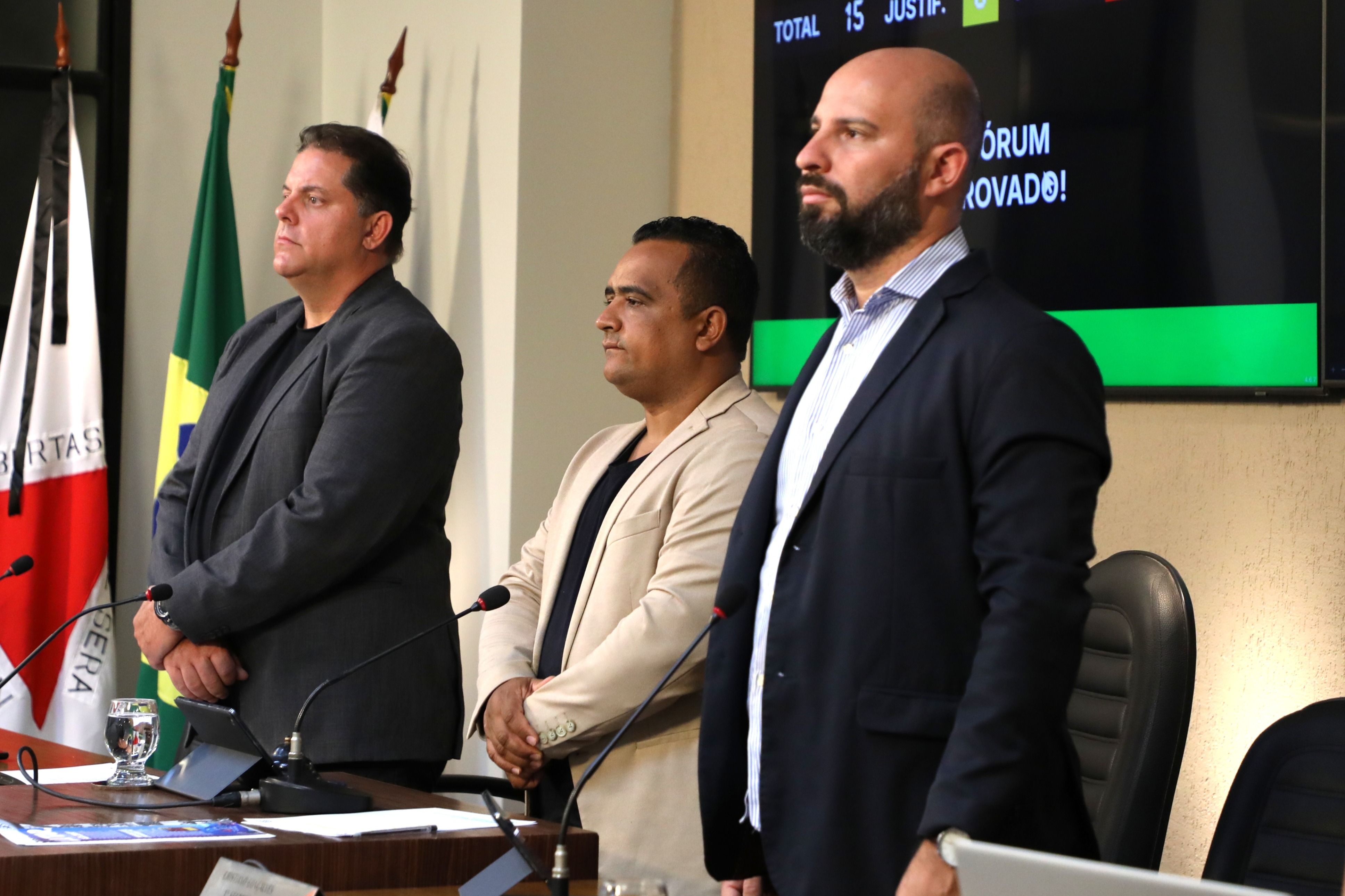 Mesa Diretora Ao centro, o vereador Robson Souza (PSB), presidente; à esquerta, o vereador Sérgio Marota (PP), vice-presidente e à direita o Vereador Cristiano Gonçalves (SD), secretário da Mesa