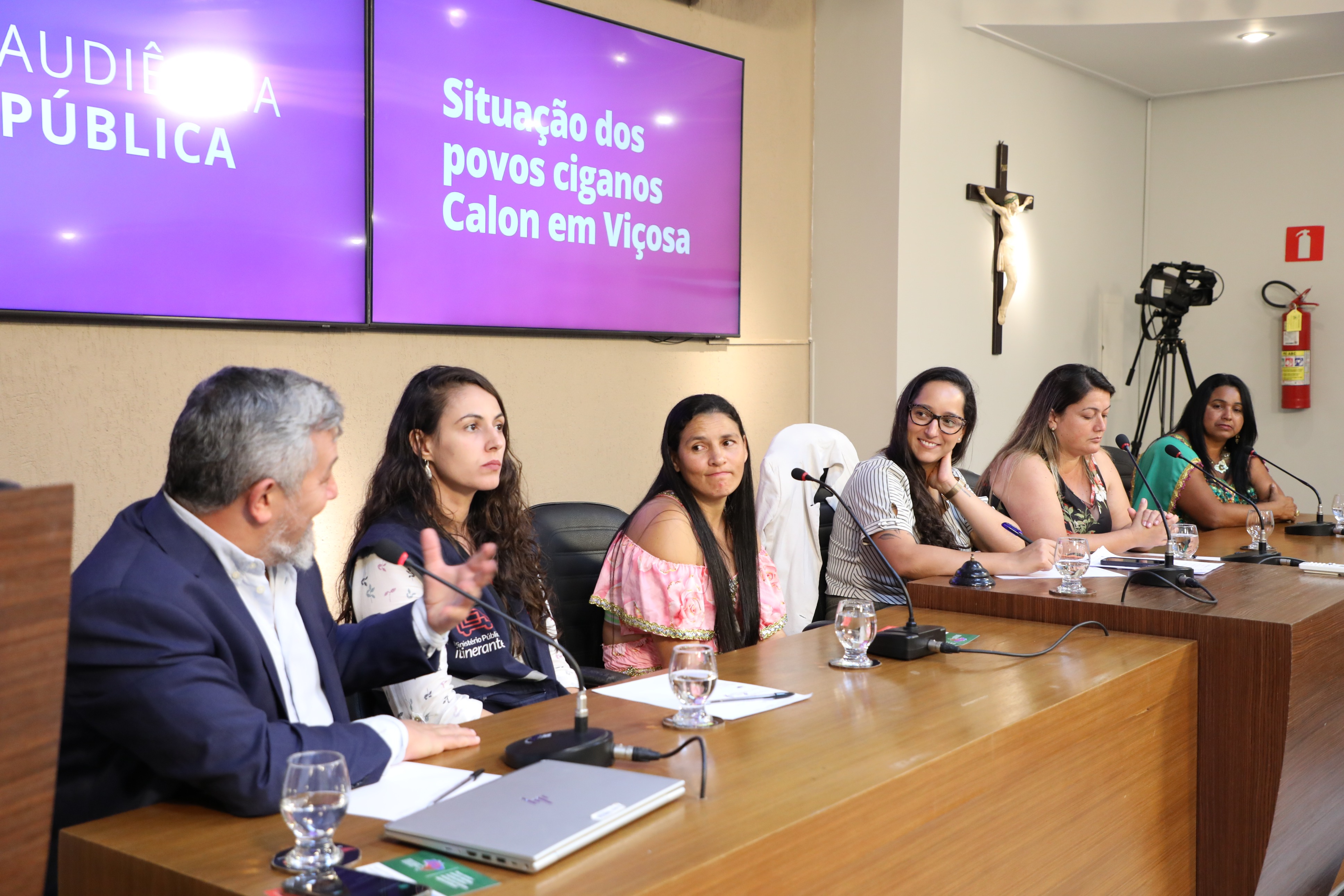 Mesa da audiência pública sobre Situação dos Povos Ciganos Calon em Viçosa